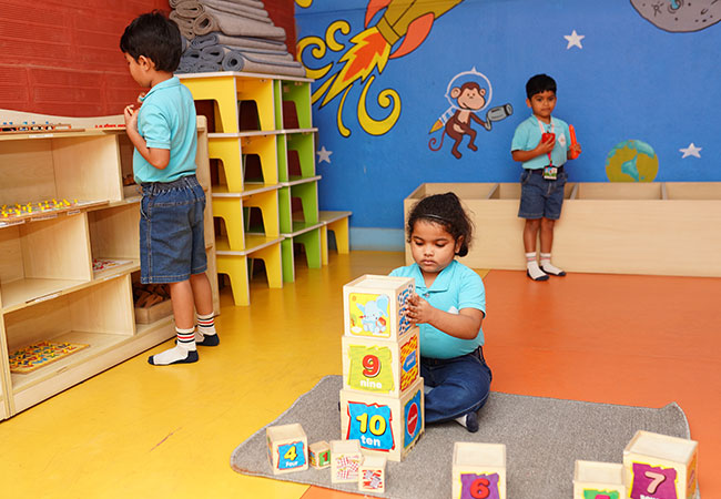 A calm, thoughtfully curated space where children feel relaxed, safe, and ready to learn. The Knowledge Lounge is designed to spark curiosity. Children observe picture cards, explore learning materials, and interact with teachers through small-group discussions. Here, they begin to understand the world through exploration and observation. Every moment encourages early thinking, builds vocabulary, and nurtures confidence. It is a space where learning is not rushed but gently discovered.