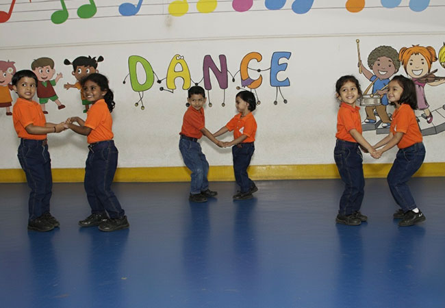 Bright mirrors, rhythmic music, and an encouraging atmosphere make the dance room a favourite among young learners. Children learn simple dance steps, move to beats, express emotions through actions, and enjoy group performances. Dance helps them develop confidence, coordination, rhythm, flexibility, and body awareness. It is a space that inspires creativity and joyful expression.