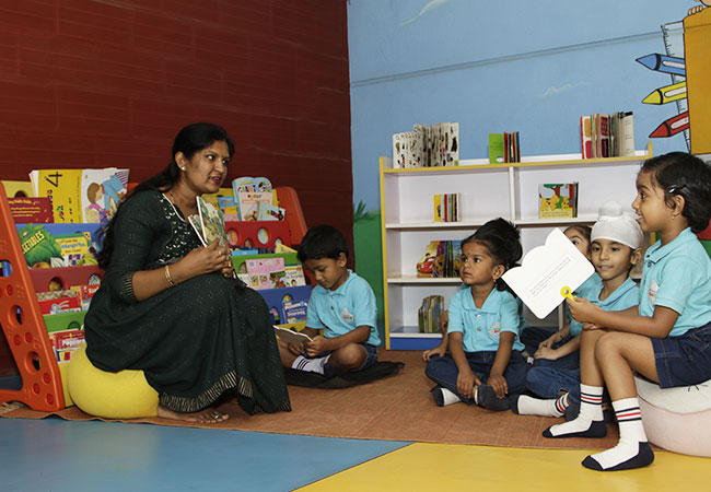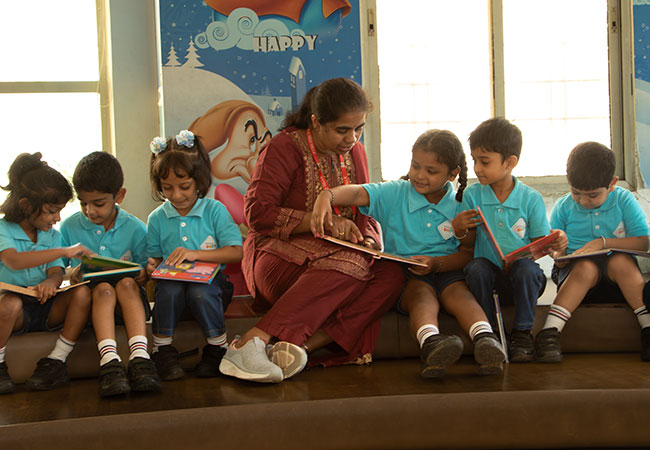 Our library is more than a collection of books—it is a warm, inspiring world where stories come alive. Soft seating, colourful shelves, and picture books invite children to pick up a book and explore. They enjoy story sessions with teachers, flip through books independently, and build listening and comprehension skills. The library encourages imagination, emotional connection, and early literacy. It lays the foundation for reading habits that last a lifetime.